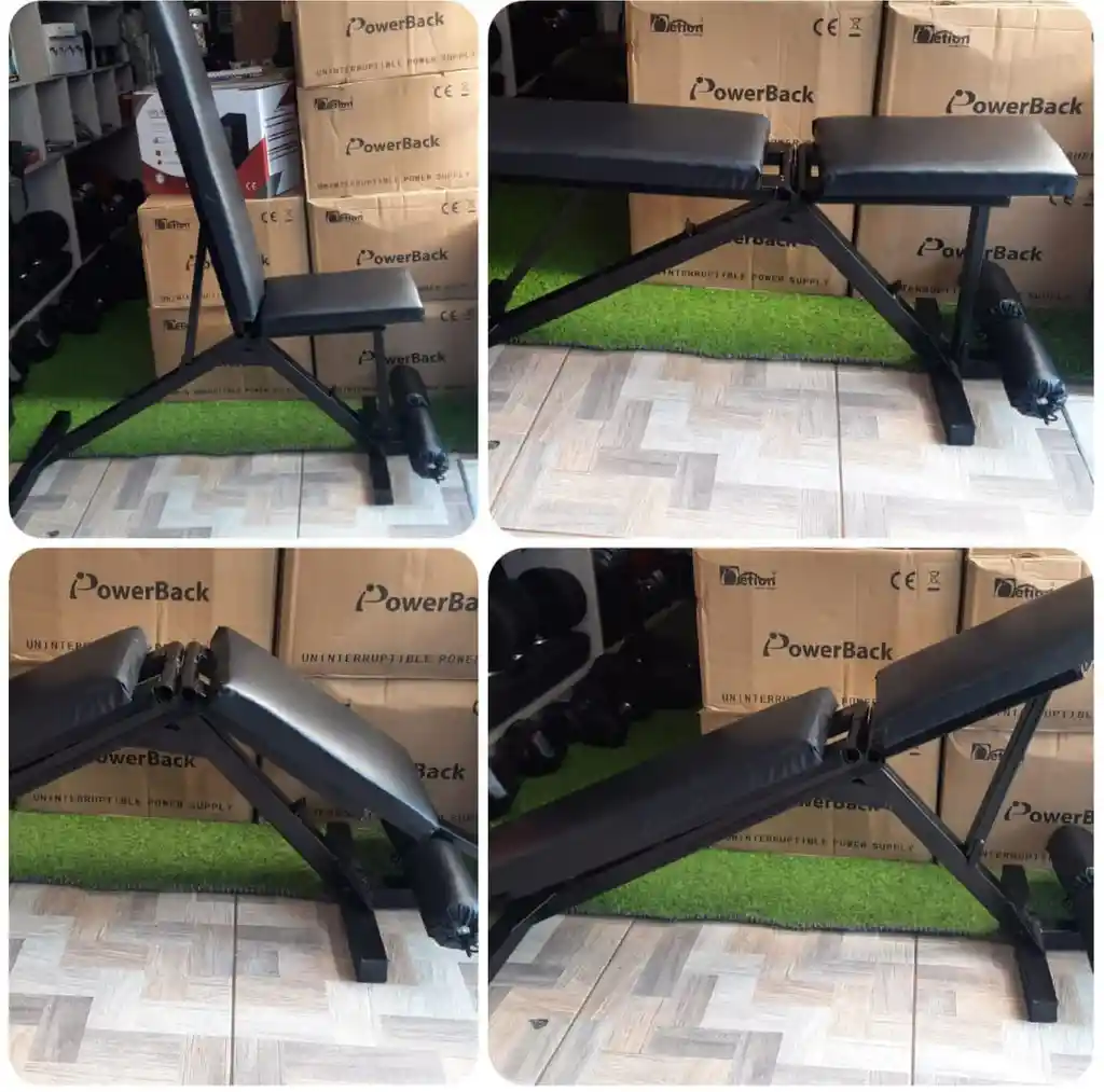 Descripción Banco para pesas multinacional declinable y reclinable. Este modelo te ofrece 4 posiciones de inclinación y 1 posición declinado en el espaldar (90 ,45. 30, 0 y -30 grados) y 4 posiciones de inclinación en el asiento, con un soporte para pies cuando se usa en posición declinado. Perfecto para todo tipo de trabajo con mancuernas y barras. Material en tubería estructural calibre 14, soporte hasta de 300 kilos, tapizados en espuma naranja