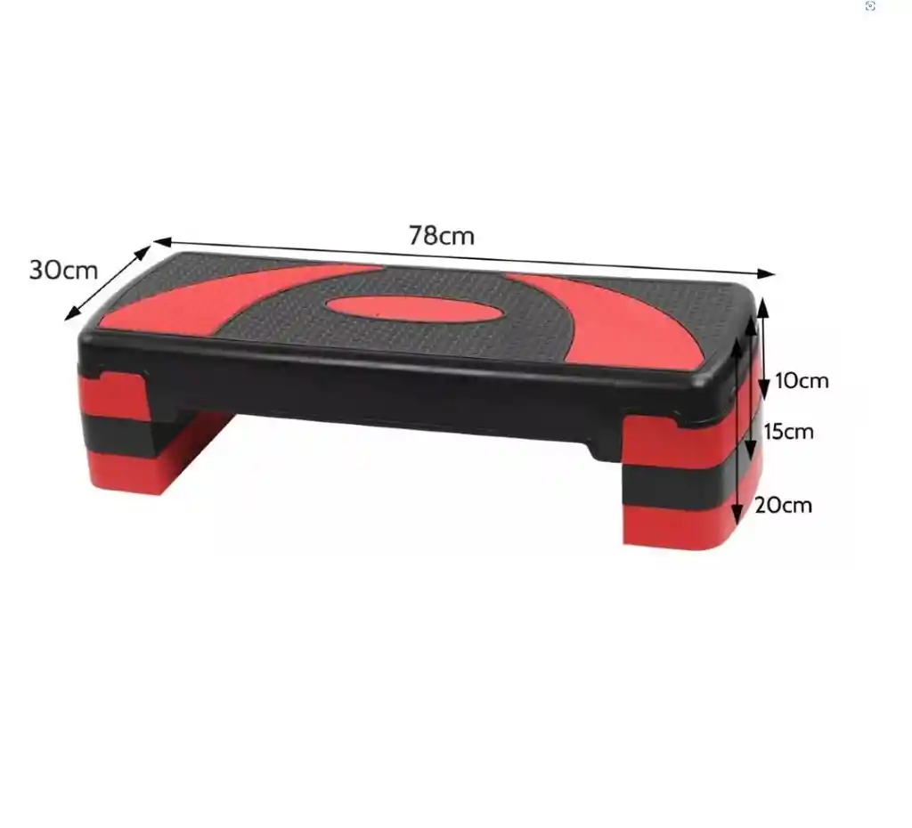 Recuerda que el Color o Diseño es ALEATORIO ya que para mayor agilidad del proceso de despacho y entrega de tu producto se hace de manera aleatoria ya que no contamos con producción especifica** Las rutinas de ejercicios aeróbicos para banco de escalón o step van de lo simple a lo complicado, pero siguen siendo un gran entrenamiento para tu sistema cardiovascular y la parte inferior del cuerpo. Tu rutina puede ser tan simple como subir y bajar en el banco con pies alternados, o tu rutina puede involucrar movimientos de baile complejos que te harán sudar. Los principiantes probablemente deberían empezar con rutinas fáciles, pero una vez que se sientan cómodos con ellas, podrían ir subiendo la complejidad y la intensidad de los ejercicios. Cuanto mayor sea la altura de tu banco, más duro trabajarán tus piernas. DETALLES: Dimensiones: 68cm An x 29cm Pr x 15 (10)cm Al - Superficie antideslizante para un paso seguro. - Color: Negro Rojo - Peso equipo: 2.8Kgs - 3 Niveles de altura - Base antideslizante - Trabajo cardiovascular - sirve para uso intenso y gimnasios - Dimensiones: Sistema Multinivel. - 3 Niveles de altura . - Trabajo Cardiovascular. Dimensiones: 68cm An x 29cm Pr x 15 (10)cm Al
