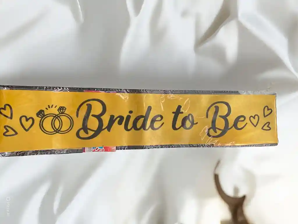 BANDA COLGANTE EN TELA DISEÑO DE BRIDE TO BE COLOR DORADO
