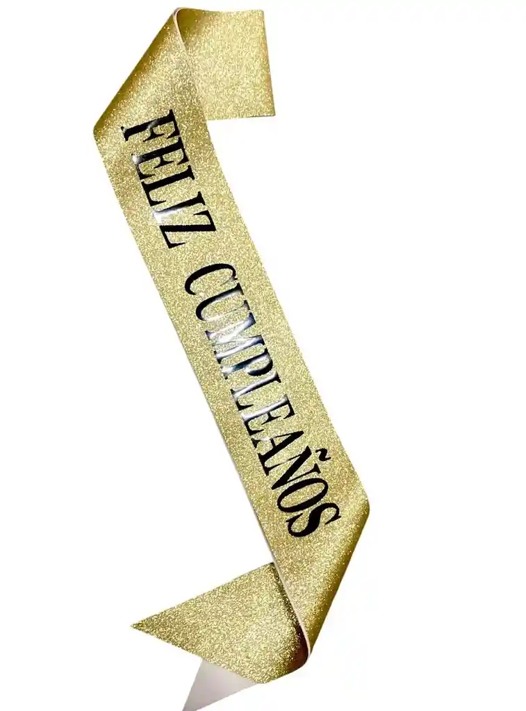 Banda De Feliz Cumpleaños Escarchada Dorada Letras Negras Hora Loca