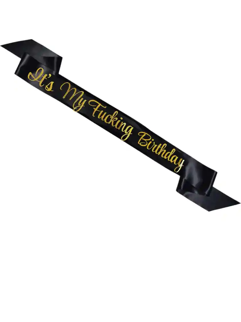 banda de feliz cumpleaños negro con letras doradas its my fucking birthday letrero de despedida tela saten en color negro largo de 80 cm ancho de 9,5 cm disponibilidad inmediata Si deseas adicionar otros Artículos a tu compra puedes escribirnos, para poder ayudarte.