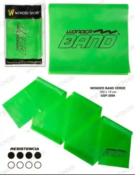 Banda elástica theraband verde wonder 1.50 cm (metro y medio),de resistencia baja.