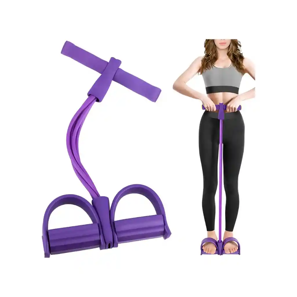 Tamaño: 45 x 25,5 cm Color: morado Peso: 210 g: espuma TPE NBR Embalaje: bolsa de polipropileno, tamaño de embalaje de aproximadamente 40 x 25 x 6 cm Punto de venta del producto. 1. 4 tubos de goma altos engrosados, enemigo de tracción más fuerte, tira de hasta 60 libras. lugar, peso ligero, sin deformación, sin olor. 3. Reposapiés suave y envolvente, no daña el pie. 4. Empuñadura antideslizante para garantizar el entrenamiento.