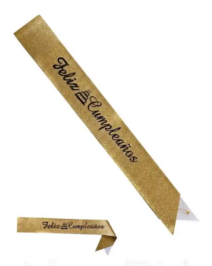 Banda Feliz Cumpleaños Escarchada Dorada Letras Negras Hora Loca