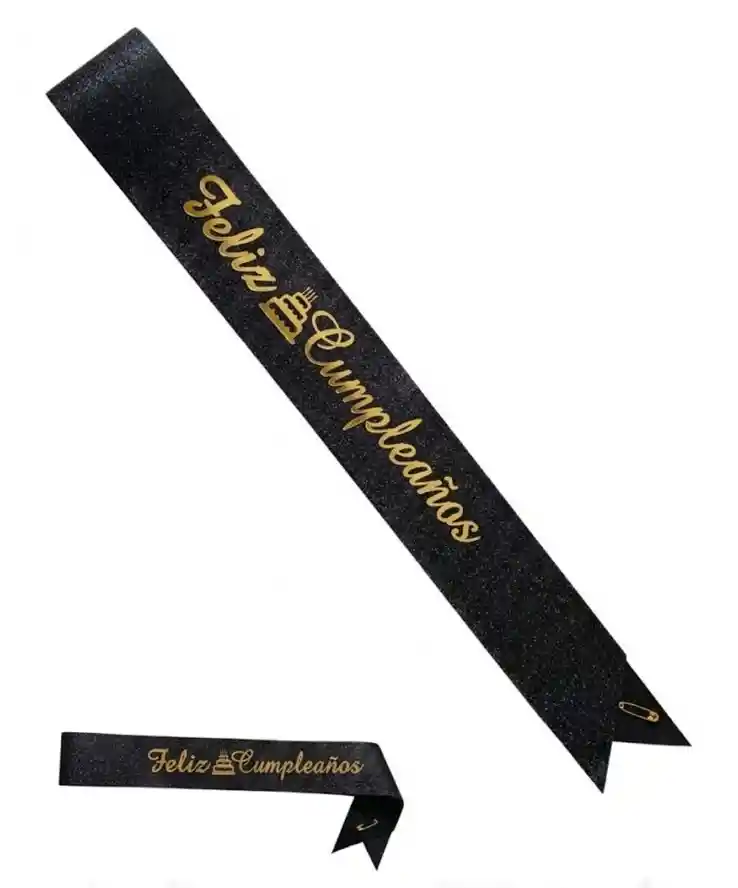 Banda Feliz Cumpleaños Escarchada Negra Letras Doradas Hora Loca