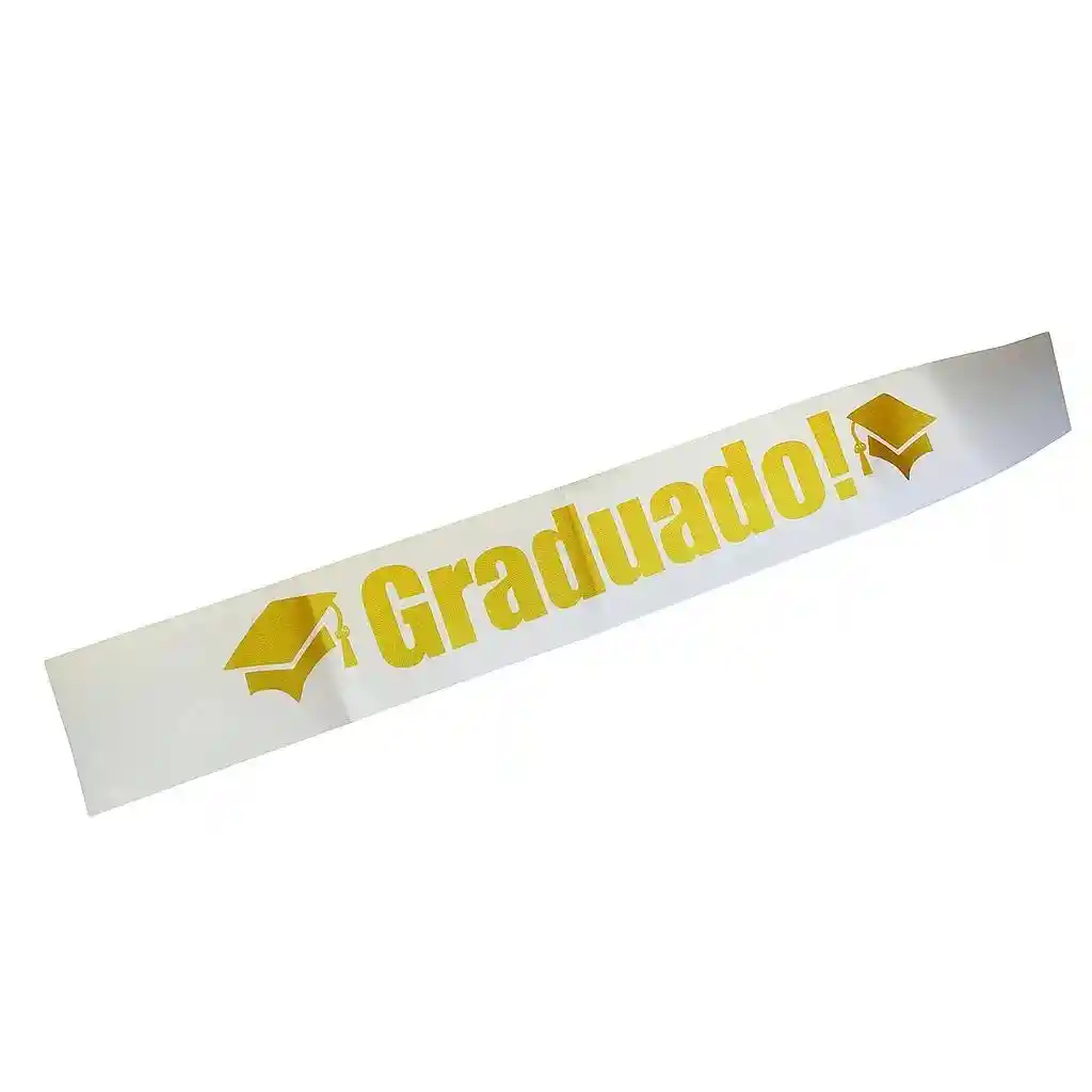 Banda Graduado Blanca Letras Doradas. Celebra tu graduación con estilo y elegancia con estas exclusivas bandas de graduación. Diseñadas especialmente para conmemorar este logro único.