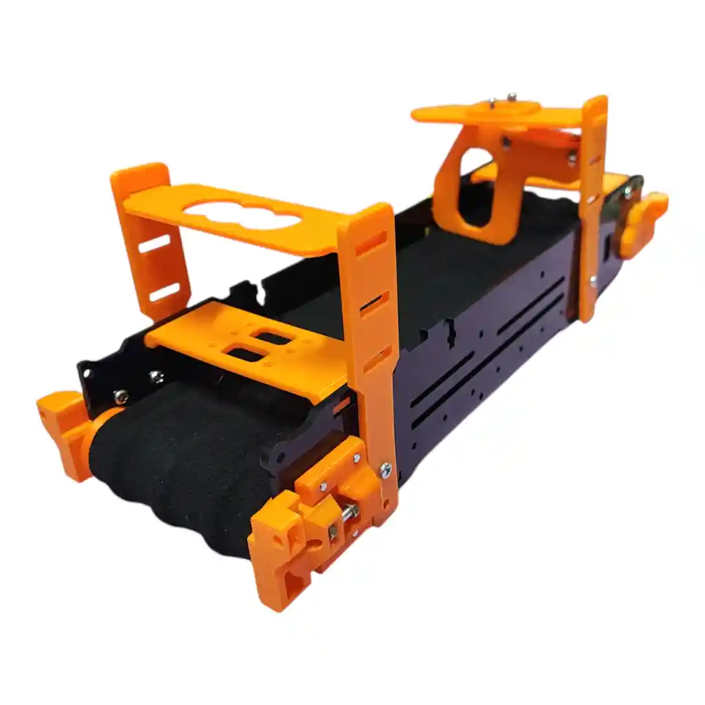 ** NO INCLUYE MOTORREDUCTOR, NI SERVO, NI ELECTRONICA, SOLO LA BANDA TRANSPORTADORA*** ***MATERIAL ACRILICO**** Banda transportadora para desarrollo de prototipos y simulaciones de Robotica. Material de la Banda: Tela de alta resistencia. Capacidad de arrastre de la banda: 300 gramos Largo: 320 mm. Ancho: 115 mm Alto: 110 mm (sin soportes de sensor), 185mm (con soporte de sensor). LA COMPRA INCLUYE: 1 x Banda Transportadora. ***MATERIAL ACRILICO**** ** NO INCLUYE MOTORREDUCTOR, NI SERVO, NI ELECTRONICA, SOLO LA BANDA TRANSPORTADORA***