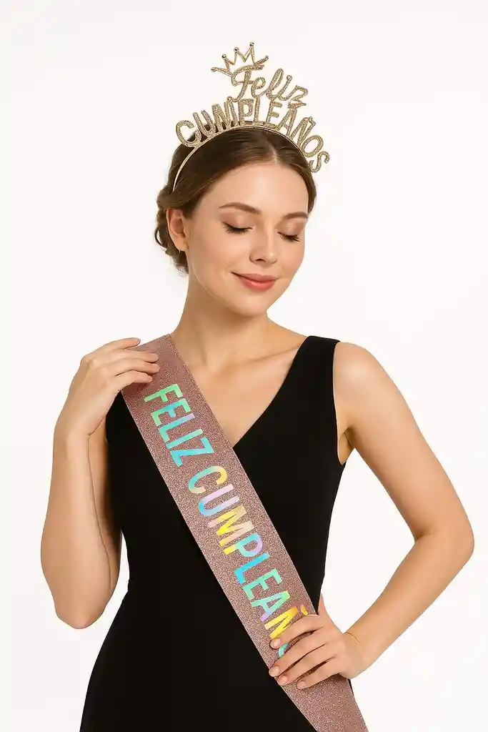 Kit para fiesta cumpleaños contenido 1 tiara oro rosa feliz cumpleaños 1 Banda Oro Rosa feliz cumpleaños disponibilidad inmediata de fiesta con lyly