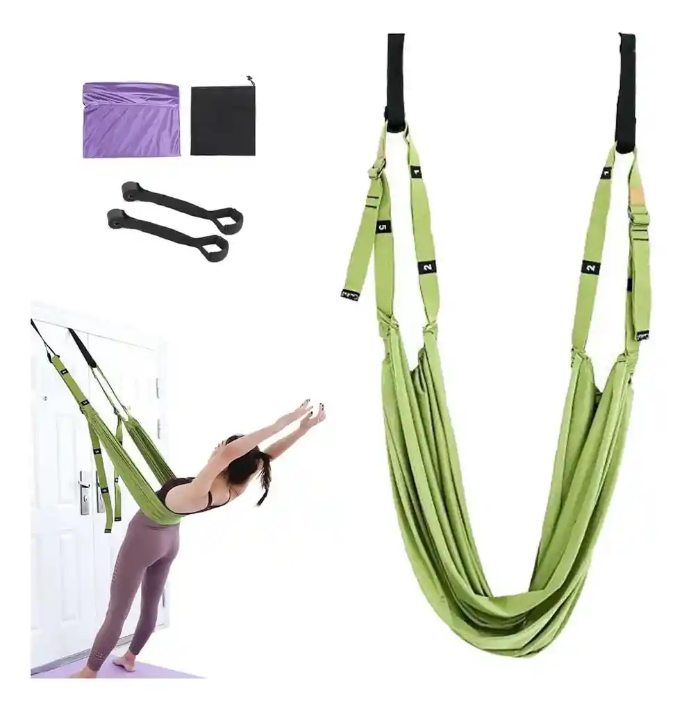 Uso: Diseñado para yoga aéreo, estiramientos profundos, ejercicios de inversión y mejoras en la flexibilidad. Componentes: Incluye correas ajustables, soportes acolchados y un anclaje de puerta resistente para una instalación segura. Almacenamiento: Viene con una bolsa negra para guardar y transportar el equipo fácilmente. Beneficios: Ayuda a aliviar dolores de espalda y mejora el rango de movimiento al actuar como un fisioterapeuta personal en casa. Ajustable: La altura y el ángulo se pueden ajustar libremente para adaptarse a diferentes alturas e intensidades de ejercicio, sin límite de edad. Material mejorado: La parte central del cinturón utiliza un tejido ampliado, a menudo hecho de una mezcla de poliéster y algodón de alta resistencia, que es resistente al desgarro, flexible y duradero. Fácil instalación: Cuenta con un diseño de doble mandril de espuma comprimida de alta calidad que se fija detrás de la puerta, sin necesidad de perforar ni dañar la puerta. Versatilidad: Se puede utilizar para una variedad de propósitos, incluyendo entrenamiento de flexibilidad, fuerza, tracción, pérdida de peso, pilates, ballet, danza y terapia física. Beneficios: Ayuda a mejorar la flexibilidad de la espalda, cintura, piernas y brazos, alivia los espasmos musculares y promueve la recuperación de la función motora. Especificaciones Capacidad de carga: Tiene una fuerte capacidad de carga, con productos similares que soportan hasta 250 kg. Material: Comúnmente fabricado con poliéster y algodón de alta resistencia. Longitud: Ajustable, con longitudes que pueden variar entre 2,5 metros o más, dependiendo del modelo específico. Ancho: La parte de la hamaca central suele ser ancha para mayor comodidad, mientras que las correas pueden tener un ancho de 3,8 cm o similar.