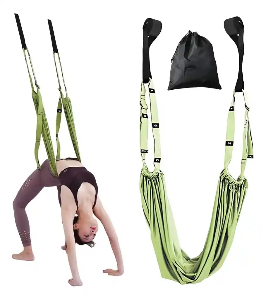 Uso: Diseñado para yoga aéreo, estiramientos profundos, ejercicios de inversión y mejoras en la flexibilidad. Componentes: Incluye correas ajustables, soportes acolchados y un anclaje de puerta resistente para una instalación segura. Almacenamiento: Viene con una bolsa negra para guardar y transportar el equipo fácilmente. Beneficios: Ayuda a aliviar dolores de espalda y mejora el rango de movimiento al actuar como un fisioterapeuta personal en casa. Ajustable: La altura y el ángulo se pueden ajustar libremente para adaptarse a diferentes alturas e intensidades de ejercicio, sin límite de edad. Material mejorado: La parte central del cinturón utiliza un tejido ampliado, a menudo hecho de una mezcla de poliéster y algodón de alta resistencia, que es resistente al desgarro, flexible y duradero. Fácil instalación: Cuenta con un diseño de doble mandril de espuma comprimida de alta calidad que se fija detrás de la puerta, sin necesidad de perforar ni dañar la puerta. Versatilidad: Se puede utilizar para una variedad de propósitos, incluyendo entrenamiento de flexibilidad, fuerza, tracción, pérdida de peso, pilates, ballet, danza y terapia física. Beneficios: Ayuda a mejorar la flexibilidad de la espalda, cintura, piernas y brazos, alivia los espasmos musculares y promueve la recuperación de la función motora. Especificaciones Capacidad de carga: Tiene una fuerte capacidad de carga, con productos similares que soportan hasta 250 kg. Material: Comúnmente fabricado con poliéster y algodón de alta resistencia. Longitud: Ajustable, con longitudes que pueden variar entre 2,5 metros o más, dependiendo del modelo específico. Ancho: La parte de la hamaca central suele ser ancha para mayor comodidad, mientras que las correas pueden tener un ancho de 3,8 cm o similar.