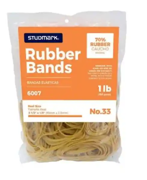 Las bandas de caucho Studmark ST-06007 (tamaño #33) en presentación de 1 libra son una solución de alta elasticidad y durabilidad diseñada para organizar y agrupar objetos en oficinas, comercios y entornos educativos