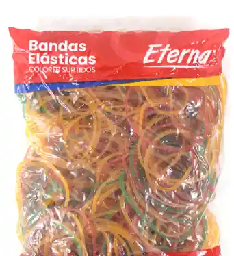 Bandas elásticas o ligas plásticas, flexibles y duraderas, ideales para organizar, calidad premium Cantidad PESO NETO 50G Material 100% Sintético Tipo de uso papelería y oficina Componentes Bandas de Cauchos Siliconadas Eterna
