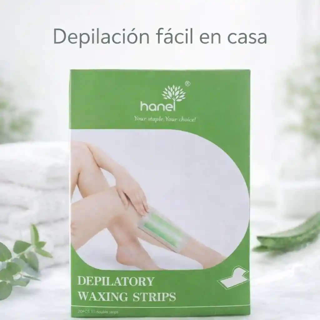 Bandas depilatorias prácticas para uso en casa. Ideales para retirar el vello corporal de manera sencilla y rápida sin necesidad de equipos adicionales. ✨ Características: 20 piezas (10 tiras dobles) Listas para usar Uso corporal Tamaño práctico Fáciles de aplicar Modo de uso: Frotar la tira entre las manos, separar lentamente y aplicar sobre la piel limpia y seca. Retirar en dirección contraria al crecimiento del vello. Contenido del paquete: 1 caja con 20 piezas.