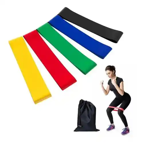 kit de 5 bandas elásticas + estuche o bolsa de almacenamiento. facil de usar y transportar.FLEXIBLES. COMPACTAS Y DURADERAS LARGO 30 CM ANCHO 3 CM . MATERIAL EN LATEX. 5 RESISTENCIAS 5 ESPESORES DIFERENTES.Mini bandas elásticas ideales para tonificar. para realizar estiramientos. calentamientos. entrenamientos domésticos. fisioterapia. Yoga. rehabilitación. Pilates y Crossfit.