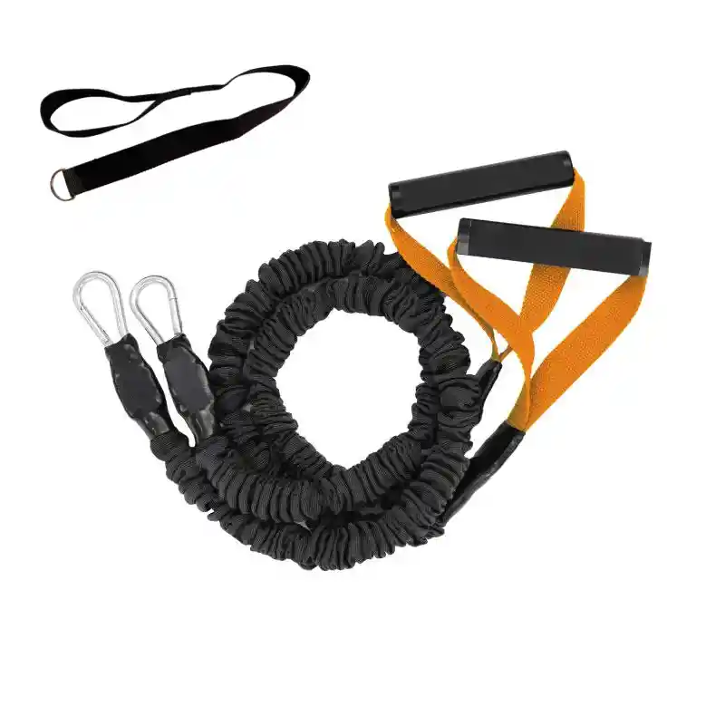» CARACTERÍSTICAS: - 100% Nuevo y de Alta Calidad. - Color: NARANJA, 50 LIBRAS DE TENSIÓN. - Bandas profesionales recubiertas en nylon, con agarres ergonómicos suaves en espuma y mosquetones en acero. - Incluye una correa de anclaje en reata con anillo metálico para amarre en postes, tubos o incluso como soporte para puertas. - Longitud de cada Banda: 90 cms, más agarres mas mosquetones. - El precio publicado corresponde a unidad del artículo (el par). - Útil para casi todas las edades y niveles de condición física. _______________________________________________________________ » BREVE DESCRIPCIÓN: - Ideal para ejercitarse, reducir grasa, aumentar masa muscular y tonificar, piernas, glúteos, brazos, hombros y espalda. - Ideales para trabajo metabólico en entrenamiento funcional. - Las Bandas elásticas te permiten realizar ejercicios de resistencia y generación de fuerza. - Proporciona Flexibilidad y desarrollo de fuerza muscular. - Múltiples Beneficios para tu salud y poner tu resistencia a prueba. - Resistencia Efectiva para el fortalecimiento muscular, tonificación y entrenamiento de movilidad.