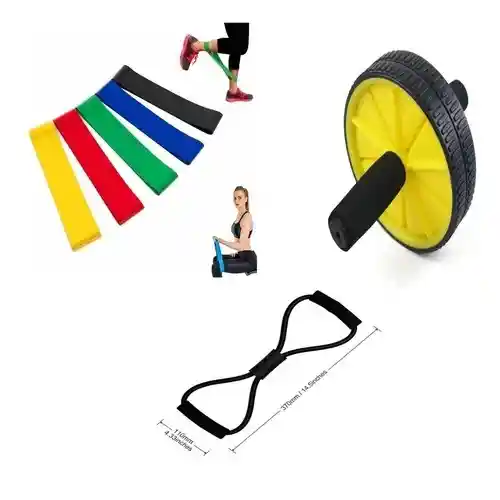 DESCRIPCIÓN:Lleva este maravilloso kit. para que empieces desde ya a tonificar y poner tu cuerpo como siempre lo soñaste.Incluye:BANDAS PLANAS ELÁSTICAS KIT DE 5Con diferente resistencia por color. Incluye bolsa pequeña para transportarlas y una guía rápida de ejercicios que podrás realizar con las mini bands.BANDA ELÁSTICA DE 42 Cm DE LONGITUDDe alta calidad y resistencia.Ideal para entrenamiento de fuerza basado en el hogar. te permite tonificar y trabajar cada grupo muscular para hombres y mujeres.RUEDA RODILLO ABDOMINALPara adelgazar. recortar y tonificar abdominales. cintura. brazos. espalda y hombros ( INCLUYE TAPETE PARA NO LASTIMAR TUS RODILLAS).