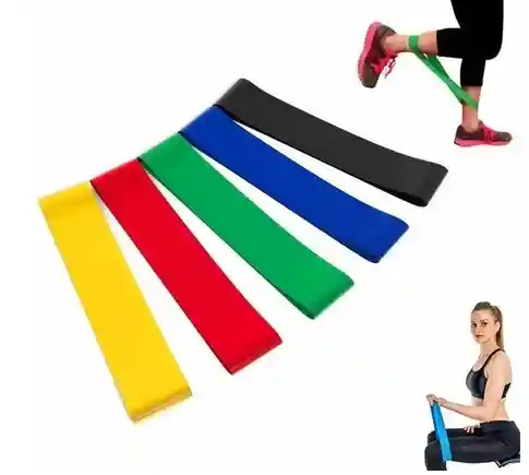 PACK DE 5 BANDAS CIRCULARES ELÁSTICASIgual que las máquinas de peso. las bandas de resistencia crean una fuerza que los músculos deben trabajar. Esto hace que la musculatura se contraiga. lo que estimula tanto el fortalecimiento óseo como muscular.Como la tensión de la banda aumenta a medida que aumenta el rango de movimiento. esto hace que la cantidad de fibras musculares que están siendo usadas también aumente. Y mientras más fibras usemos. mayor es la fuerza que podemos adquirir con este tipo de entrenamiento.Cada color representa una distinta resistencia para permitir el aumento gradual de la intensidad en sus entrenamientos.Ayudan a tonificar y ejercitar brazos. piernas. tobillos. espalda y glúteos.Ideales para:• Estiramientos• Calentamientos• ejercicios en el hogar• Fisioterapia.• Yoga• Pilates• crossfit.INCLUYE1 Pack de 5 bandas cerradas elásticas1 Bolsa - Estuche1 Banda verde 5-10 lbs1 Banda azul 10-15 lbs1 Banda amarilla 15-20 lbs1 Banda roja 25-30 lbs1 Banda negra 30-40 lbs