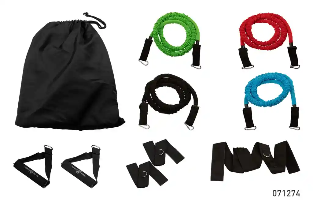 Agrega variedad y desafío a tus entrenamientos con el Juego de 4 piezas Tubulares Sportfitness. Nuestras bandas tubulares están diseñadas para ofrecer una resistencia variable que te permitirá aumentar la intensidad de tus ejercicios y mejorar tu fuerza y tonificación muscular 4 Bandas Tubulares recubiertas en tela. 2 manillares de agarre en espuma. 2 arnés de tobillo y 1 arnés de cintura. Bolsa transportadora. Medidas-Tención Verde: 9-11 libras / 110 cm. Roja: 12-15 libras / 110 cm. Azul: 16-20 libras / 110 cm. Negra: 21.25 libras / 110 cm.