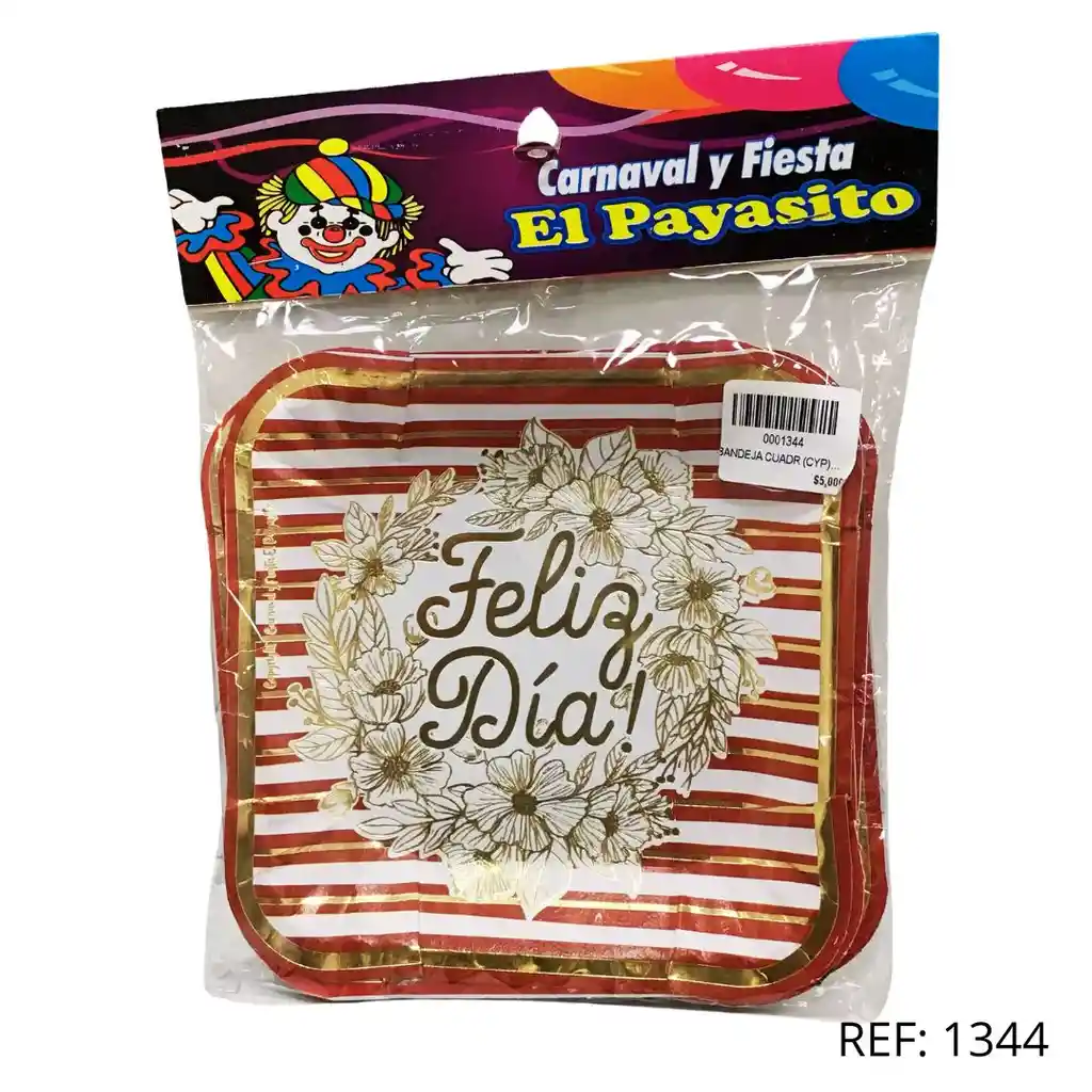 Platos cuadrados desechables con diseño romántico ‘FELIZ DIA’ en rojo y dorado, perfectos para Amor y Amistad o celebraciones especiales