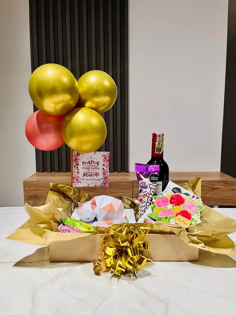 CONTIENE: 1 Vino Gato negro x 375ml 1 Galletas Tosh fresa 1 Mani la especial 1 barquillos piazza deleite 1 Chocholates moment x 3 und 1 mensaje Feliz día mama 1 tarjeta de flores 1 gato en arte de papel (tamaño con base de 16x16 cm)
