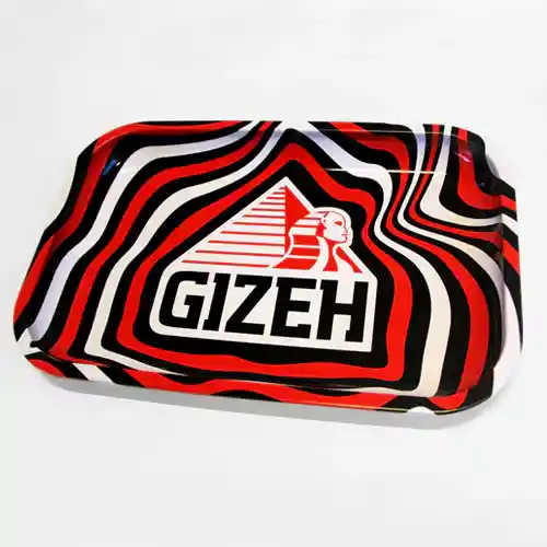 Bandeja metálica para liar y organizar productos cannábicos.