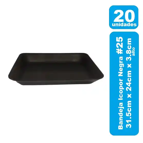 Bandeja Espumada #25 negra con unas medidas extremas de 31.5cm x 24cm por un alto de 3.8cm