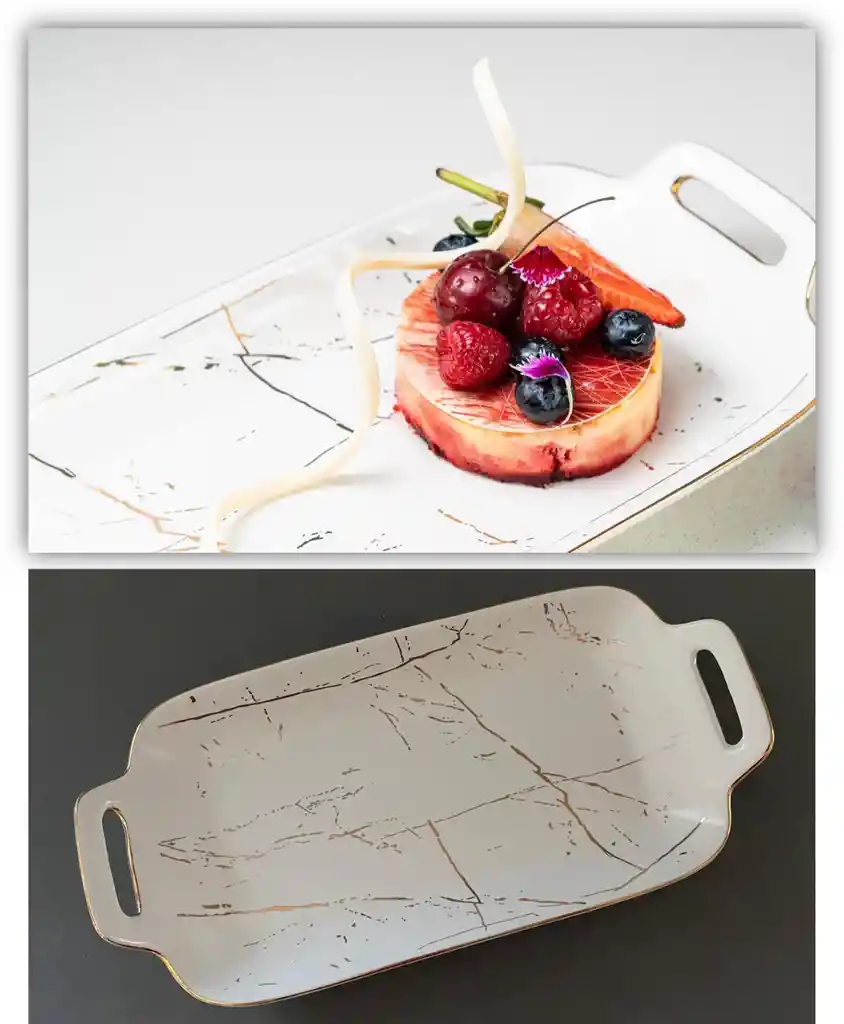 Bandeja de Porcelana Mate para Alimentos Blanca. Largo: 30cm, Ancho: 15cm