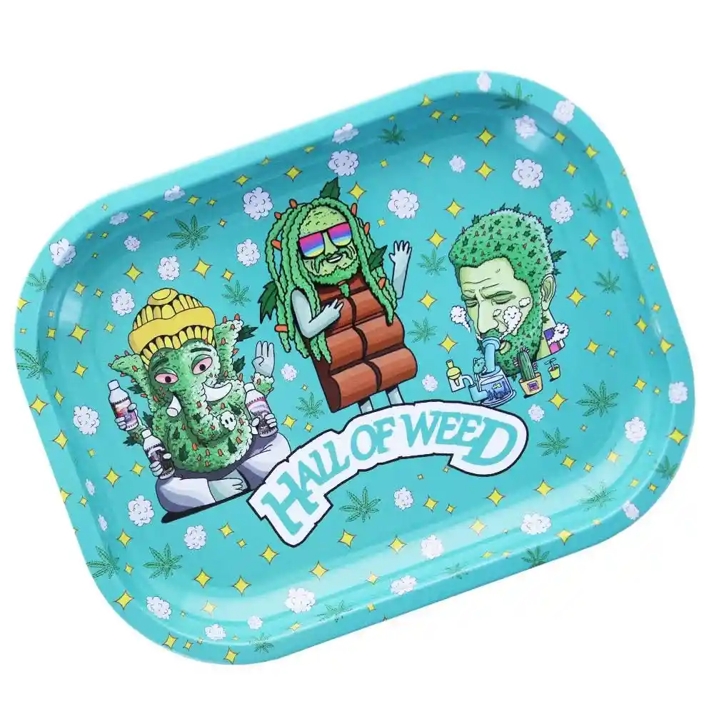 La Bandeja Metálica Hall of Weed Pequeña es un accesorio práctico y con estilo, ideal para mantener todo organizado en un solo lugar. Su diseño llamativo y temático la convierte en una pieza decorativa que destaca en cualquier espacio personal. Fabricada en metal resistente, cuenta con bordes elevados y esquinas redondeadas que ayudan a evitar derrames y facilitan el uso diario. Su tamaño compacto de 18 cm × 14 cm la hace perfecta para mesas pequeñas, escritorios o para llevarla cómodamente a cualquier lugar