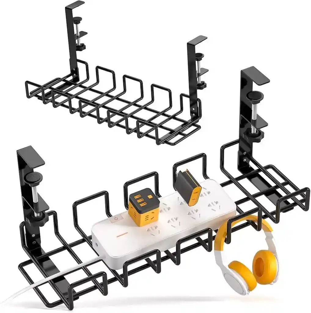 Ayuda enormemente a organizar tu escritorio: con la ayuda de la gestión de cables debajo del escritorio, la tasa de utilización del espacio se puede maximizar. La bandeja de gestión de cables puede utilizar espacio vertical no utilizado para hacer que tu escritorio esté más ordenado y cómodo Sin taladrar y fácil de instalar: la bandeja de gestión de cables debajo del escritorio se puede instalar en 5 minutos, simplemente puedes girar la perilla con tu mano para sujetar la bandeja de gestión de cables al escritorio sin taladrar agujeros, sin dañar tu escritorio. Fácil de cambiar su posición según lo necesites. Es adecuado para escritorios con un grosor de 0.4 a 2.3 pulgadas Ventilación y disipación del calor: esta gestión de cables debajo del escritorio está hecha de acero al carbono de alta calidad, es más fuerte y duradero. El diseño de construcción de red puede reducir eficazmente la acumulación de polvo. Además, mantendrá una muy buena transpirabilidad para evitar el sobrecalentamiento de tus fuentes de alimentación Diseño único: el diseño único sin taladrar combina con la mayoría de escritorios de oficina. El organizador de cables de escritorio puede contener tiras de alimentación, adaptadores de corriente y varios cables para mantener tus escritorios organizados. Estamos comprometidos a satisfacer las necesidades de los clientes y sacar los productos que realmente se necesitan Caja de gestión de cables de gran capacidad: la bandeja de gestión de cables de escritorio puede soportar hasta 10 libras, la superficie está tratada con pintura mate y no se oxida fácilmente. Si no has encontrado una manera de lidiar con la gestión de cables debajo del escritorio, nuestras bandejas de gestión de cables son tu mejor opción