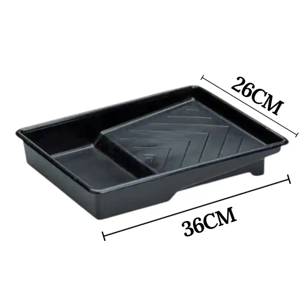 *Bandeja de plástico para pintura este accesorio es utilizado para verter la pintura y escurrir el exceso del rodillo antes de aplicarla en una superficie. *PARA TODOS LOS TIPOS DE PINTURA Y RODILLOS: Esta bandeja lavable es versátil y adecuada para su uso con todas las pinturas y barnices. *Es una excelente adición a otros kits de pintura de pared, juegos de rodillos y bandejas de decoración, o herramientas de pintura para decorar. Características *Diseñado con rejillas enrollables para una carga uniforme para asegurarse de que tu trabajo de pintura sea uniforme y uniforme para un acabado suave. *La base duradera evita que la bandeja de pintura se vuelque o se deslice. *Material: Es de plástico, lo que la hace resistente y fácil de limpiar. *Uso: Diseñada para contener pintura y permitir la carga uniforme del rodillo mediante sus rejillas. *Dimensiones: 26 cm de ancho y 36 cm de largo. *Compatibilidad: Estas bandejas suelen ser compatibles con rodillos de hasta 9 pulgadas (23 cm) de ancho. *Fácil De Usar: Simplemente vierte la pintura elegida en la bandeja, sumerge en espuma o funda de rodillo de pintura de microfibra y ponte a trabajar. Esta bandeja es práctica: fácil de llevar a cabo el trabajo cómodamente sin salpicaduras de pintura, fácil de limpiar después de pintar.