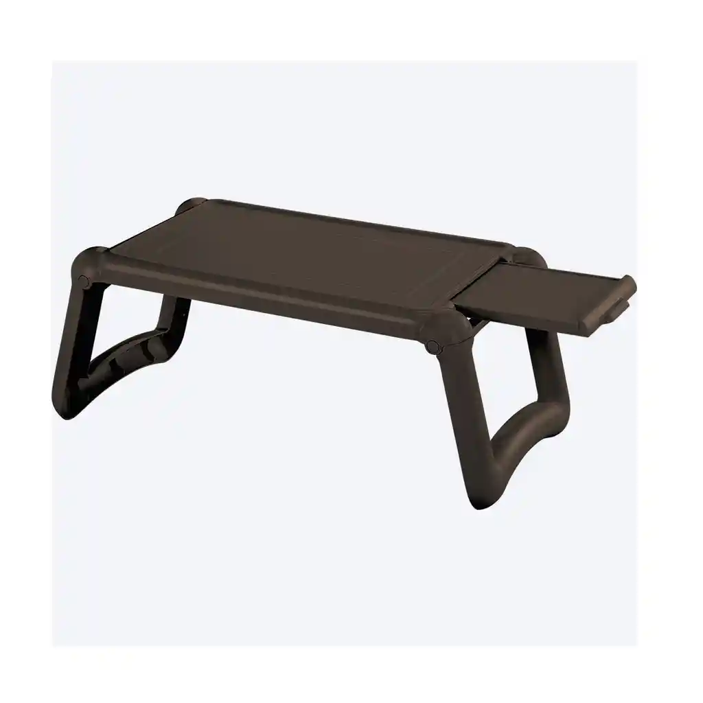 La mesa personal portátil es la opción que facilita el uso de dispositivos móviles en las habitaciones para tomar el desayuno y estudiar. Al utilizar la mesa personal portátil aísla el calor generado por los aparatos electrónicos, proporciona una mejor postura al escribir y leer, brindando comodidad y seguridad. Liviana y fuerte ya que se pliega y se guarda, es ligera, tiene una bandeja adicional para ampliar la superficie de la mesa, tiene topes de seguridad en las patas para brindar estabilidad. DETALLES Marca: Rimax Material: Polipropileno Medidas: Alto (27 cm) Ancho (34 cm) Largo (67 cm) Peso: 1.0 kg Colores: Taupe – Wengue – Blanco Hecho en: Colombia