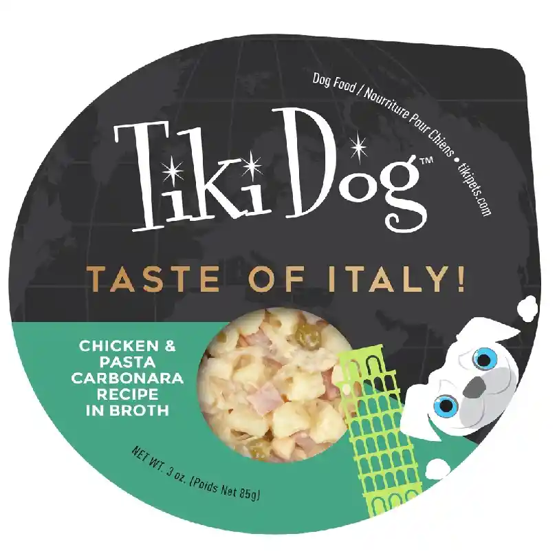 ¿Quién dijo que solo los humanos pueden disfrutar de una auténtica cena gourmet? Con Tiki Dog Taste of Italy, tu peludo podrá saborear una deliciosa receta inspirada en el restaurante, directamente en su tazón. Sabor Carbonara Irresistible: Una mezcla única con huevo y queso que crea una experiencia de sabor clásica y reconfortante que hasta los perros más exigentes adorarán.