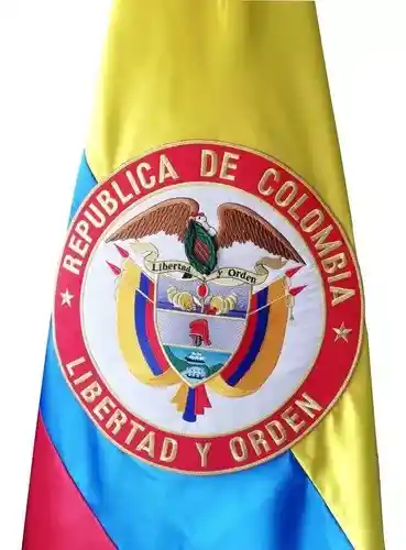 BANDERA CON ESCUDO DE COLOMBIA TELA 1.43MX87CM
