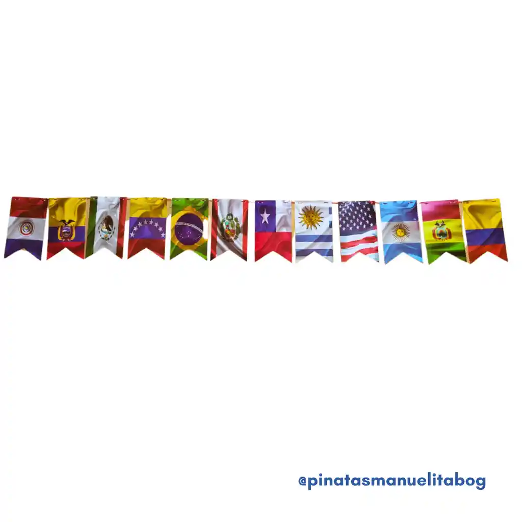 Banderín en cartón estampado de banderas de países, ideal para decorar cualquier espacio. Tiene una medida de 1.80 de largo totalmente extendido. Copa América, Bandera Colombia, Colombia, Amarillo, azul y rojo.