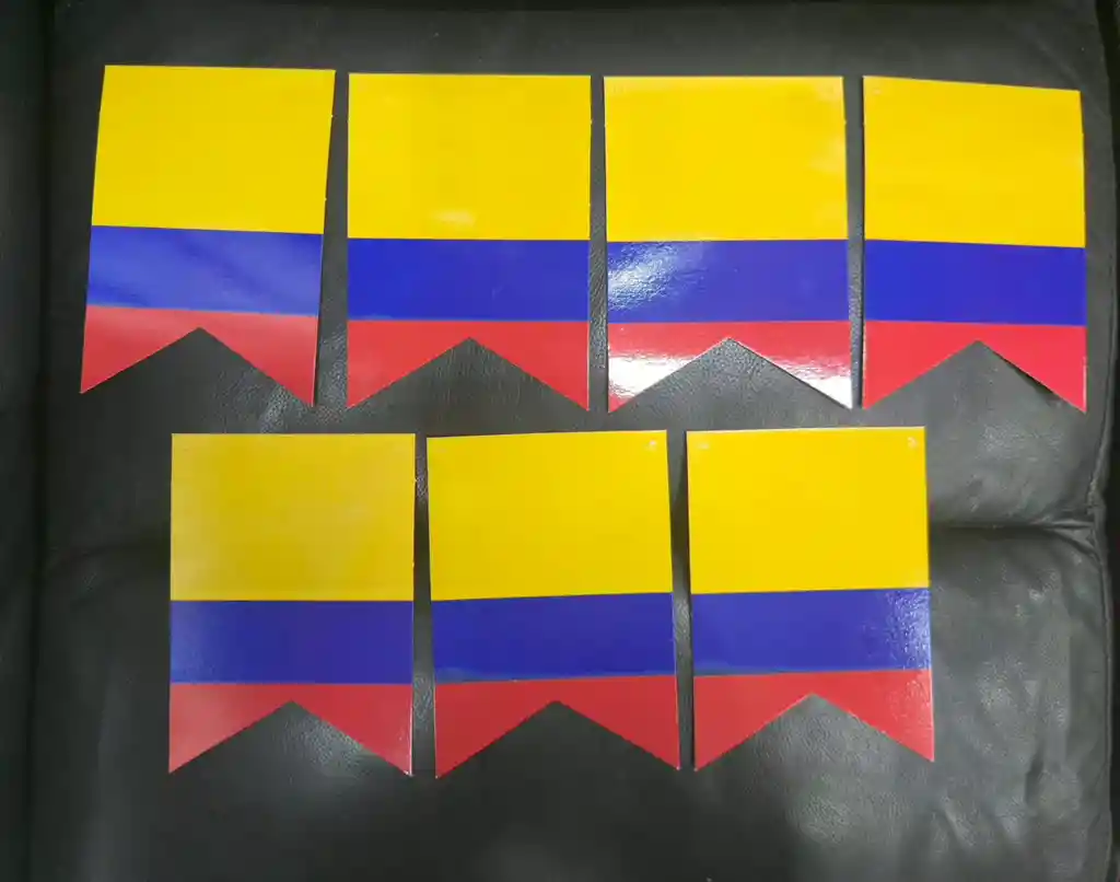 Banderin Picos Colores De Colombia x 7 Pcs Bandera, Mundial, 7 Agosto, Fútbol, Decoraciones, 20 De Julio, Cada Banderín Mide 16*12 Cms, Medellín