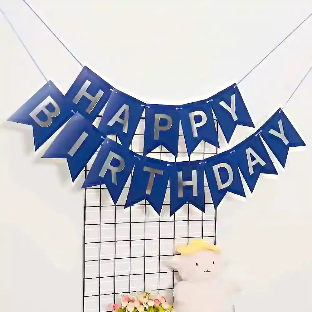 Banderin cumpleaños happy birthday, Azul con letras doradas, decoración, pancarta para fiestas de cumpleaños.