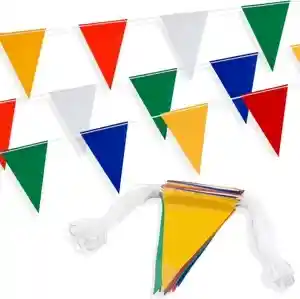 BANDERIN DE PLASTICO VERDE ROJO BLANCO AMARILLO AZUL 7 MTS APROXIMADO, CADA BANDERIN TIENE UNA MEDIDA DE 23CMX 20 CM
