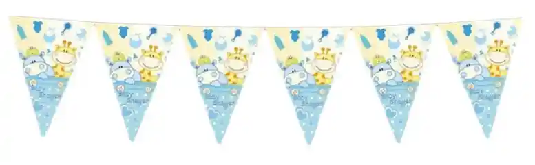Banderin Decoracion Baby Shower Hipopotamo Azul Banderín decorativo para Baby Shower motivo hipopótamo azul, ideal para ambientar la celebración de bienvenida del bebé con un toque tierno y alegre; diseño triangular con ilustraciones coloridas, perfecto para colgar en paredes, mesas de dulces o áreas de fotos y darle un encanto especial a tu fiesta.