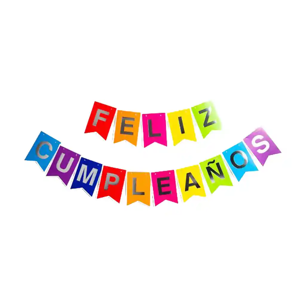 Banderin Feliz cumpleaños multicolor 3 metros letras doradas Todos los colores