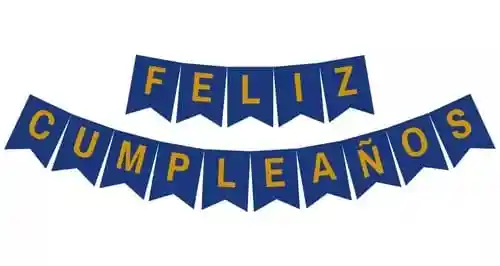 Letrero Feliz Cumpleaños Banderin Azul Mate / Letras Doradas Medida: 2metros aproximadamente CONSULTAR POR OTROS COLORES