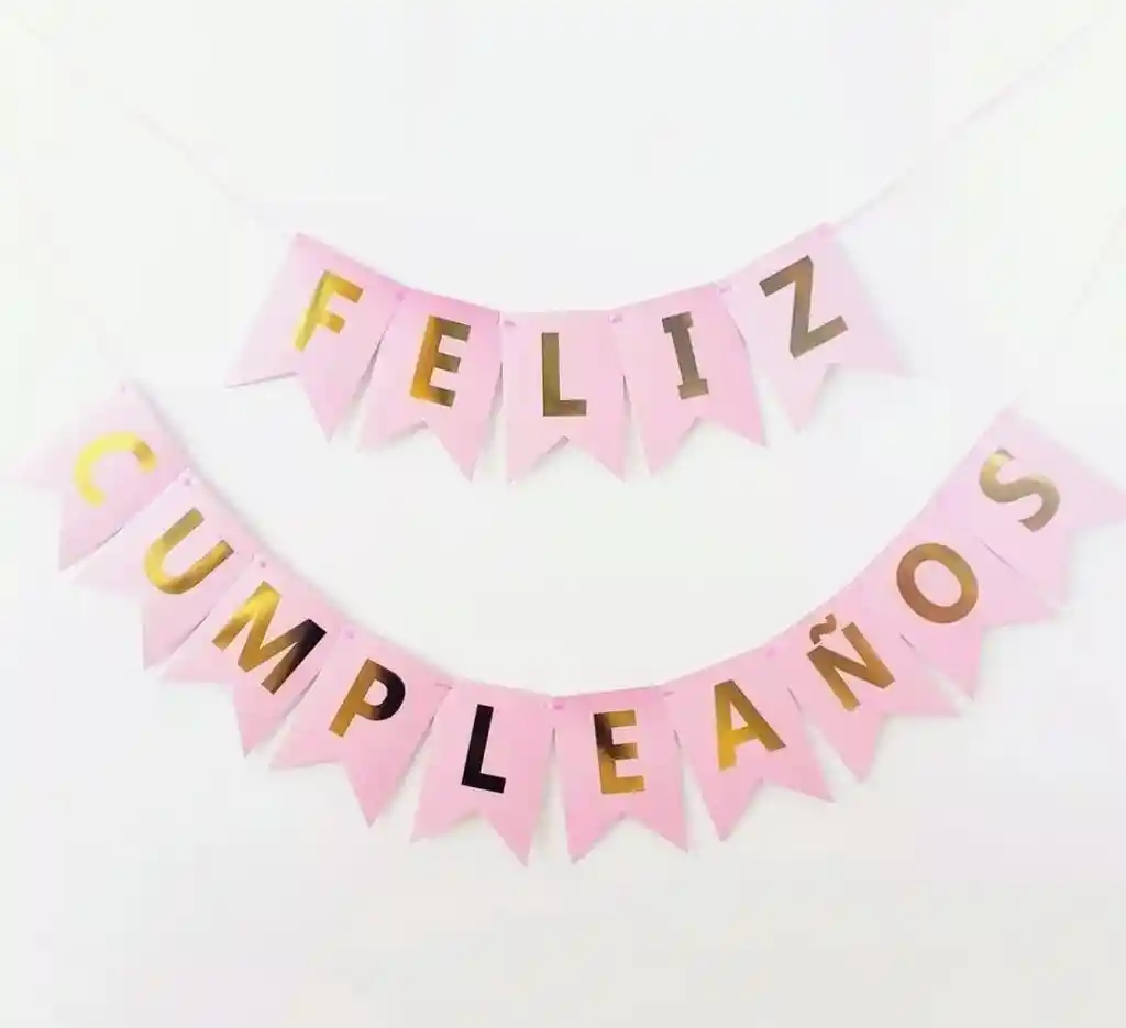 Banderin Feston/Guirnalda Feliz Cumpleaños ROSA Mate- LETRAS DORADAS Medida: 2metros aproximadamente CONSULTAR POR OTROS COLORES