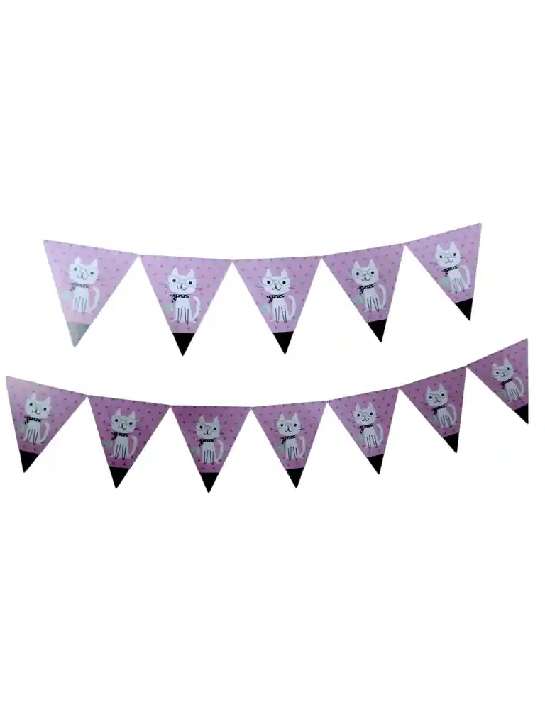 banderin para fiestas cumpleaños decoraciones eventos y mucho mas colores rosado material de carton incluye cuerda para colgar son 12 piezas cada una mide largo 14.5x16 cm forma de triangulo con fondo de gatita largo aproximado del banderin 2 metros hermoso diseño para tu fiesta si deseas algo adicional indicanos y con gusto le colaboramos
