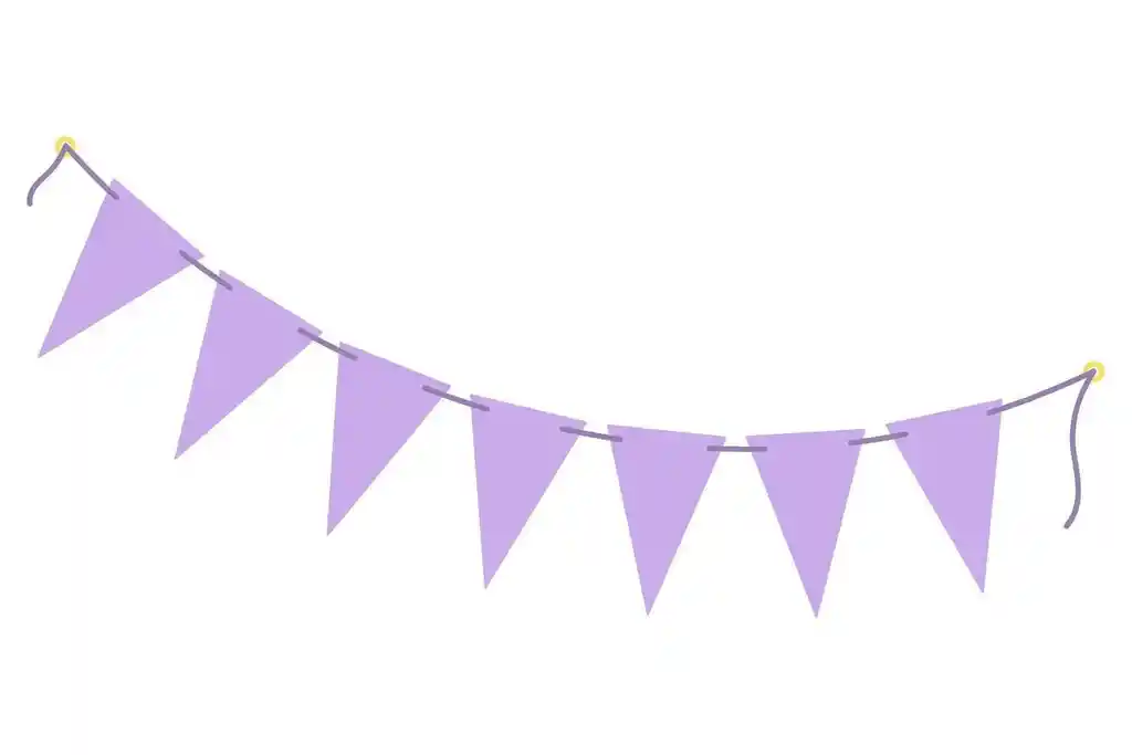 Banderín triangular en cartón en color lila pastel, en tamaño de 3.15 m (totalmente extendido)