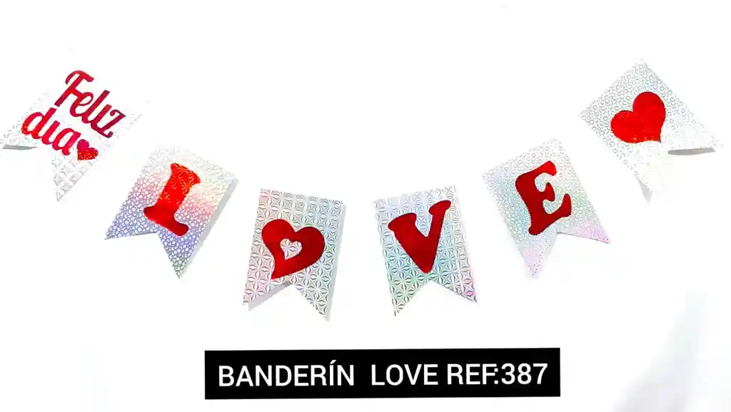 BANDERIN LOVE DECORACION AMOR Y AMISTAD BANDERIN LOVE COLOR ROJO Y PLATEADO