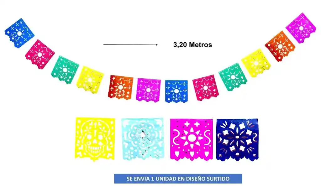 Pasa calle elaborado a mano por artesanos mexicanos. Cada paquete está cuidadosamente empacada para evitar cualquier daño. Mide Aproximadamente 3 Metros, Incluye 12 Banderines de 23X23 cm cada una. Adecuado para Fiesta Mexicana, Cumpleaños, Toda Ocasión, Hora Loca, Cumpleaños, Halloween, Carnaval, Navidad. Elaborado en papel seda