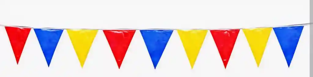 Banderín Plástico 10 Metros Colores De Colombia,tiene los colores amarillo, azul y rojo, lo puedes Utilizar al aire libre, para fiestas, partidos, Futbol, mundial, eventos, cumpleaños