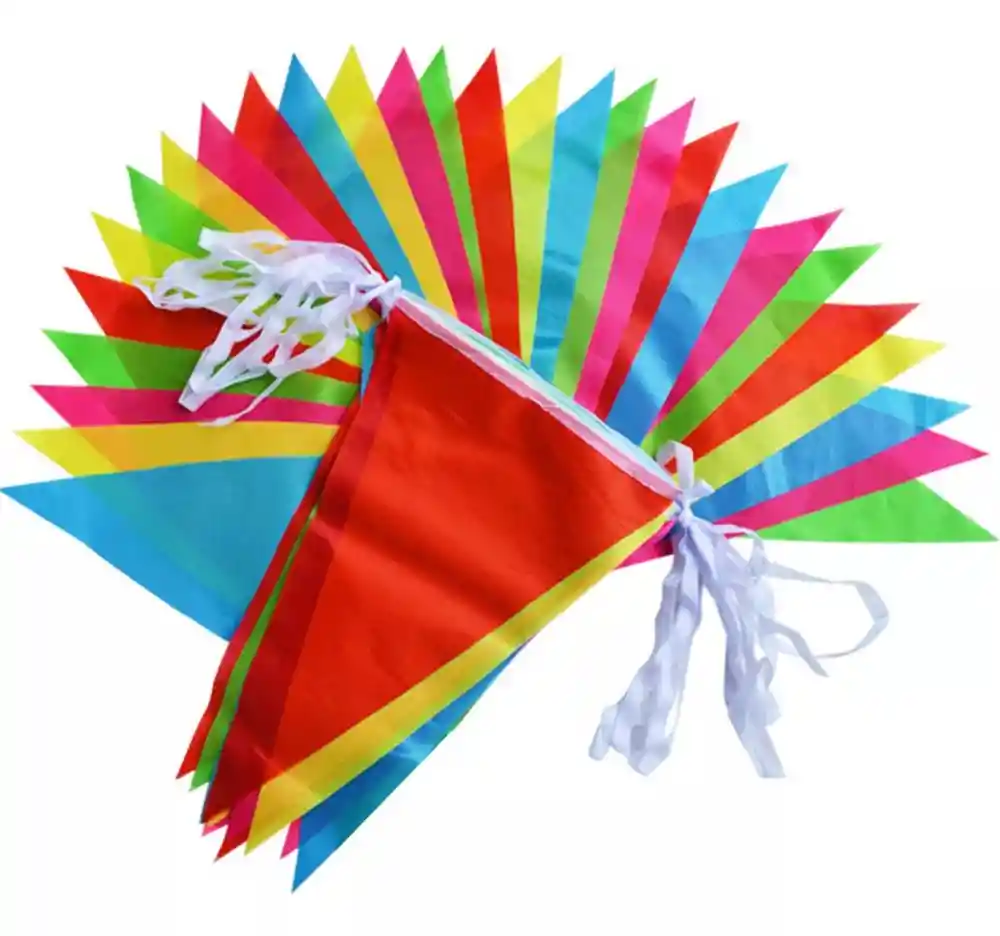banderin plastico perfecto para exteriores con colores muy llamativos perfecto para decorar bodas, cumpleaños, y celebraciones al aire libre en general