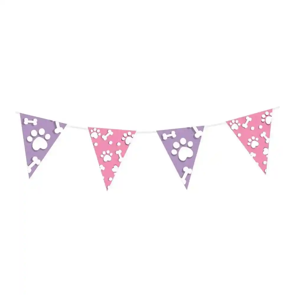 Paquete banderines con estampado de huellitas y huesos en colores rosado y morado Banderines para fiesta Decoracion de perrito