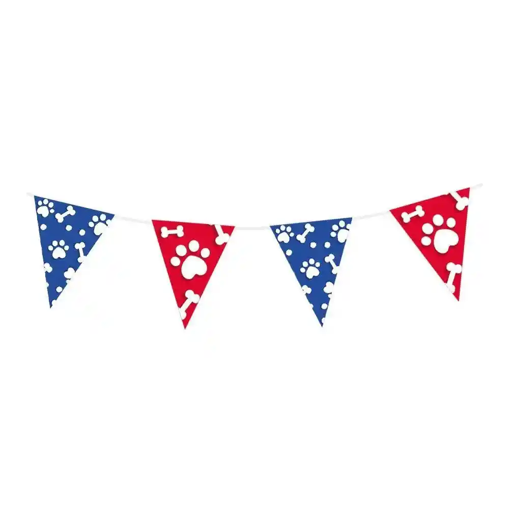 Paquete banderines con estampado de huellitas y huesos en colores rojo y azul Banderines para fiesta Decoracion de perrito