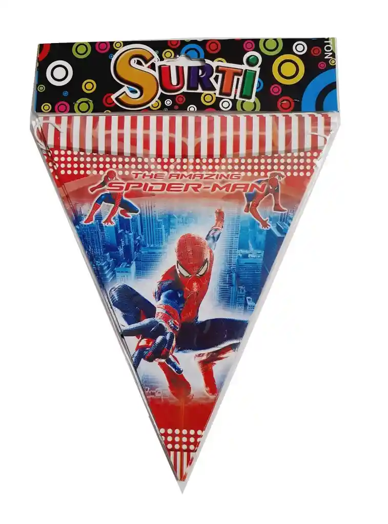 🚩 Banderines elaborados en cartón estampado de motivo Spiderman Cada banderín mide 22 cm de largo x 17 cm de ancho El paquete viene x 8 banderines